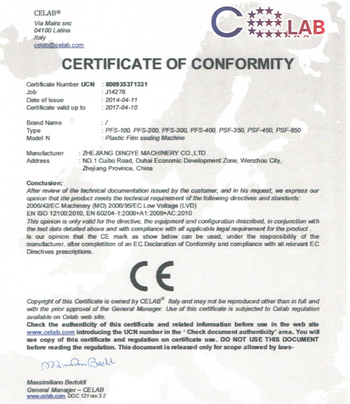 爱游戏(中国)收缩机CE证书